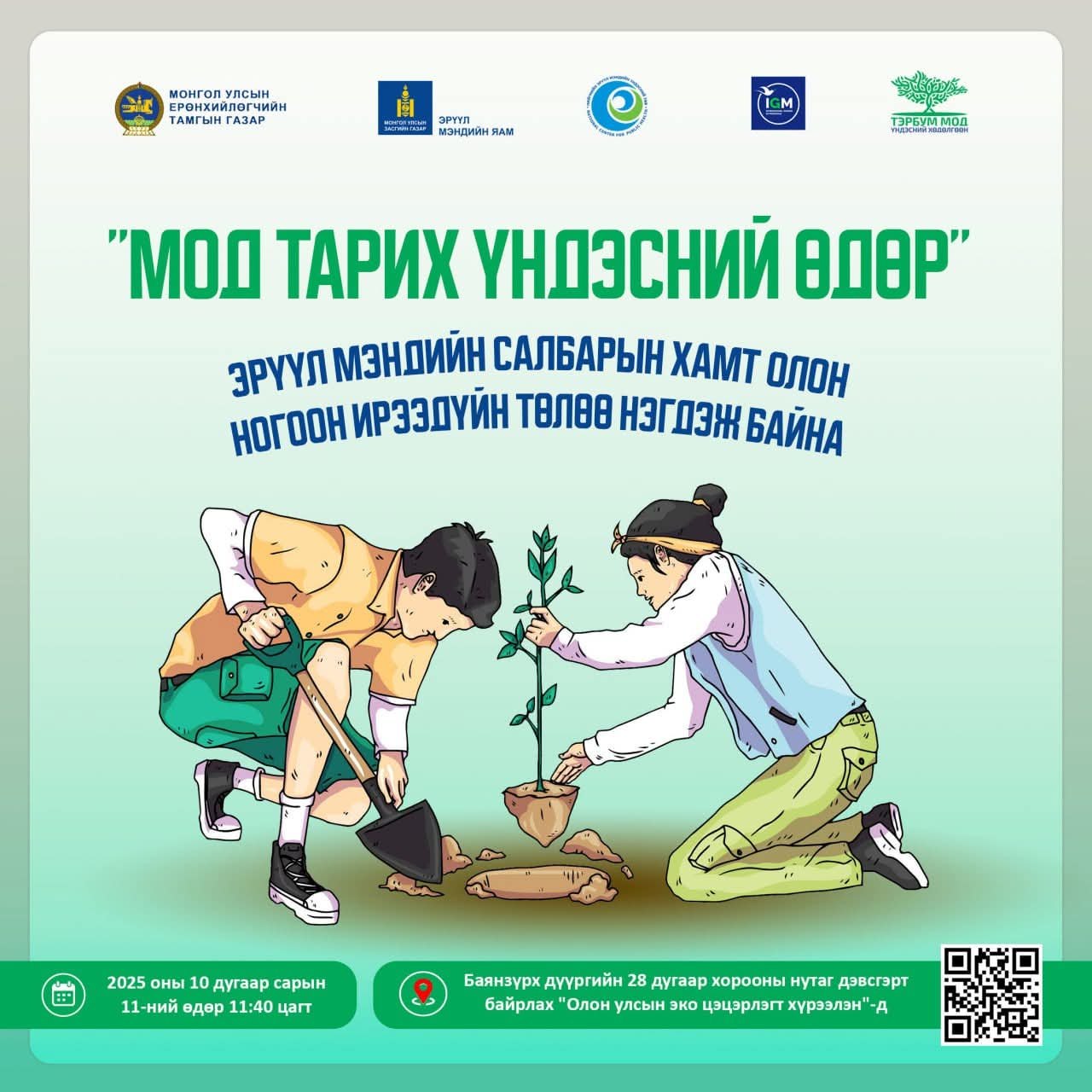 2025 оны 10 дугаар сарын 11-ний өдөр 11:40 цагаас Баянзүрх дүүргийн 28-р хороо, “Олон улсын эко цэцэрлэгт хүрээлэн”д уулзацгаая.