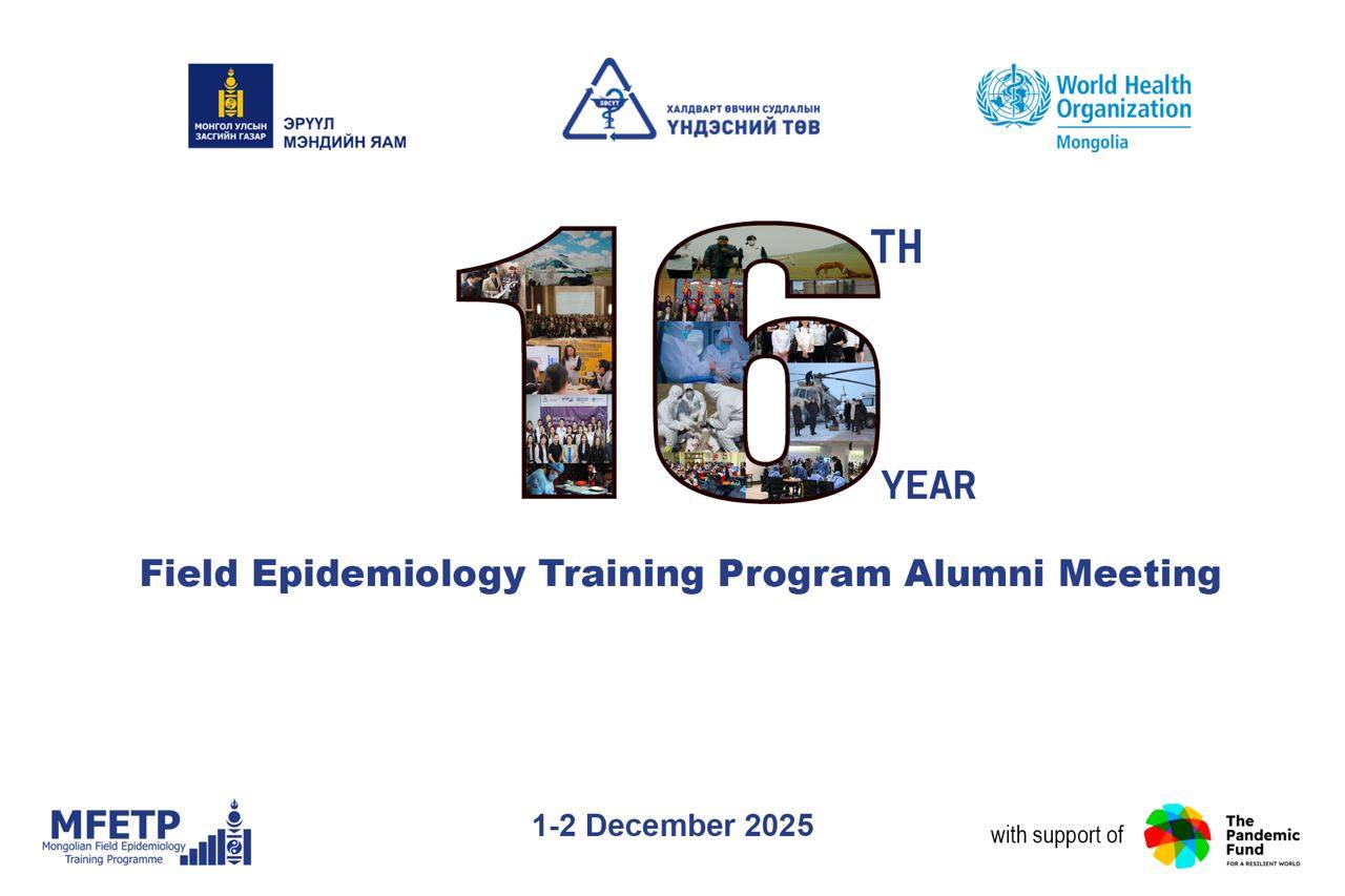 2009 оноос хойш 15 удаагийн нийт 112 төгсөгчид "Талбарын тархвар судлалын сургалтын хөтөлбөрийн 2026-2030 оны замын зураглал болон тандалтын тогтолцоог бэхжүүлэх чиглэлээр тус хөтөлбөрийн төгсөгчидтэй хийх зөвлөлдөх уулзалт"-ыг Эрүүл мэндийн яам болон ДЭМБ-ын дэмжлэгтэйгээр Халдварт өвчин судлалын үндэсний төв 2025 оны 12-р сарын 1-2-ны өдрүүдэд амжилттай зохион байгууллаа.