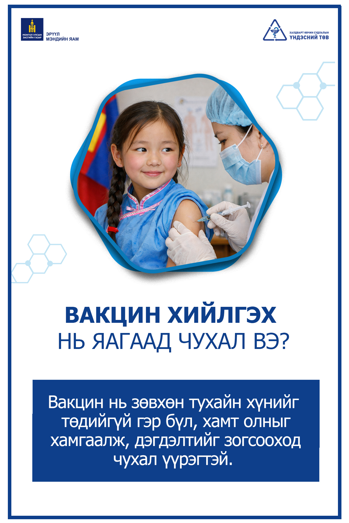 Вакцин хийлгэх нь яагаад чухал вэ? ✅💉Вакцин нь зөвхөн тухайн хүнийг төдийгүй гэр бүл, хамт олныг хамгаалж, дэгдэлтийг зогсооход чухал үүрэгтэй.