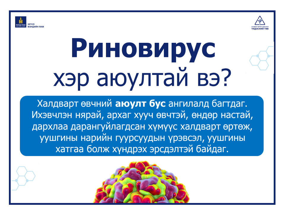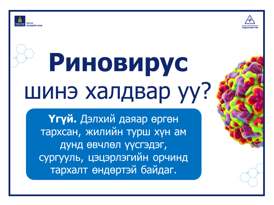 🛡 Риновирус болон бусад амьсгалын замын халдварт өвчнөөс сэргийлэх хамгийн энгийн бөгөөд үр дүнтэй арга бол:😷 Амны хаалт зүүх