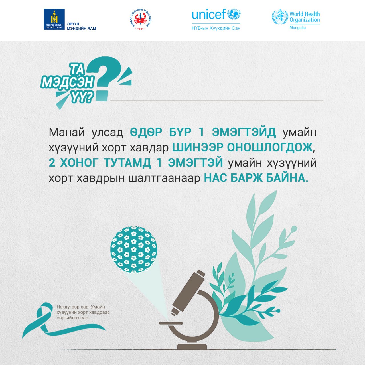 ✅Нэгдүгээр сар✅: Умайн хүзүүний хорт хавдраас сэргийлэх мэдээллийн сар