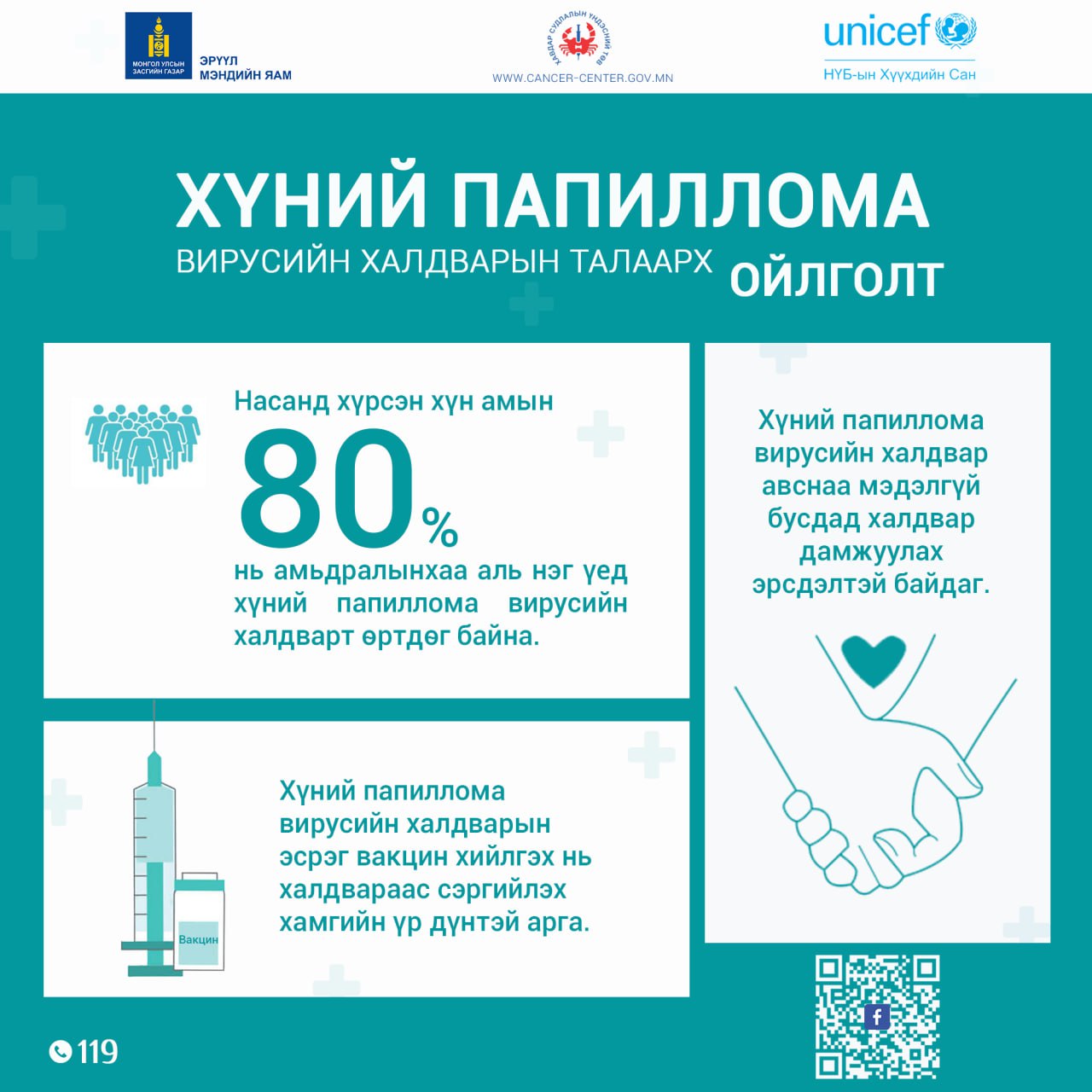 📌👩🏻⚕️ Эцэг эх, асран хамгаалагчид хүүхдүүдээ умайн хүзүүний хорт хавдрын эсрэг ВАКЦИН-д заавал хамруулах, харин эмэгтэй хүн бүр зорилтот насандаа тогтмол эрт илрүүлэг, үзлэг, оношилгоондоо идэвхитэй хамрагдаарай.💝