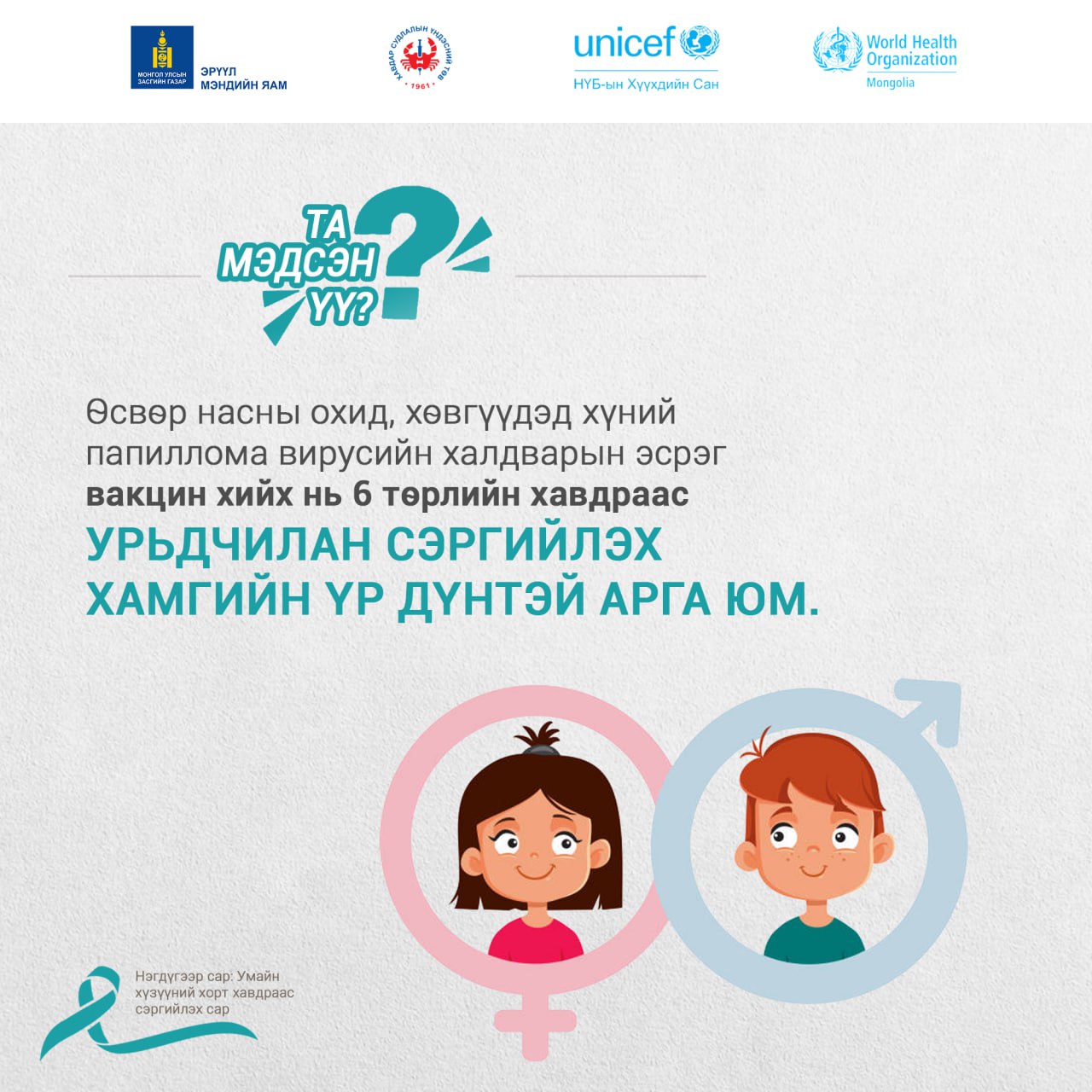 ✅Нэгдүгээр сар✅: Умайн хүзүүний хорт хавдраас сэргийлэх мэдээллийн сар