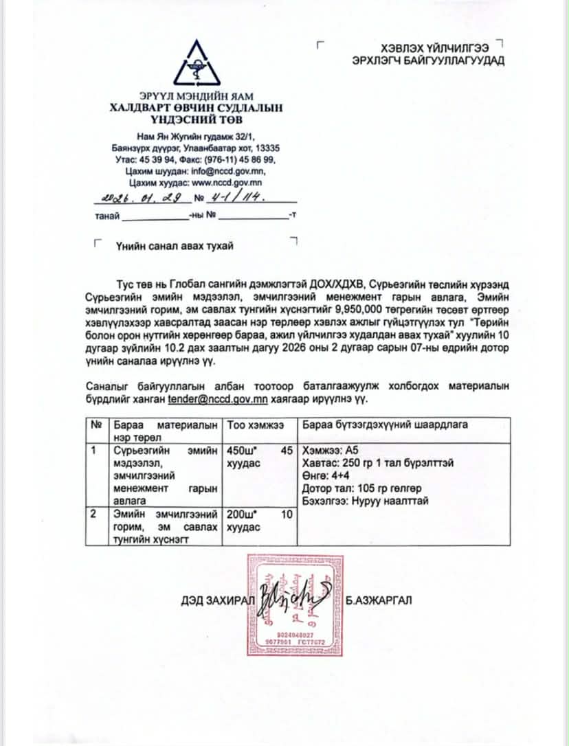 Цагийн хуваарь: Амбулатори 08:30-14:30Халдвартын хүлээн авах яаралтай тусламж 24:00 цаг