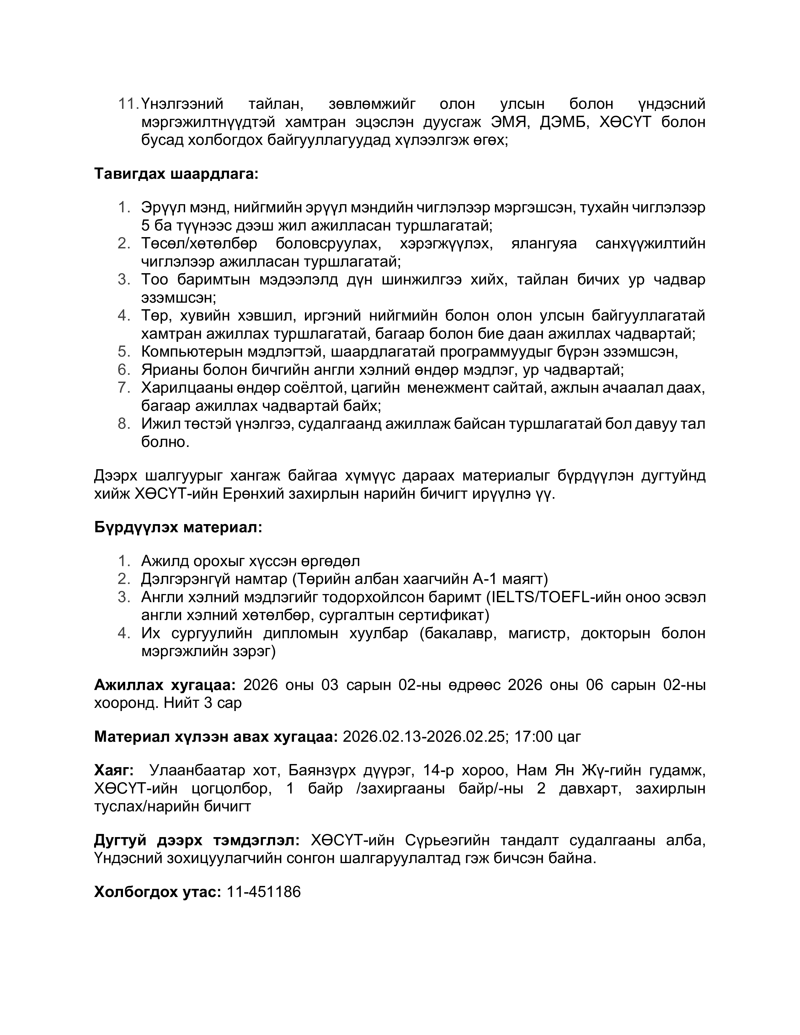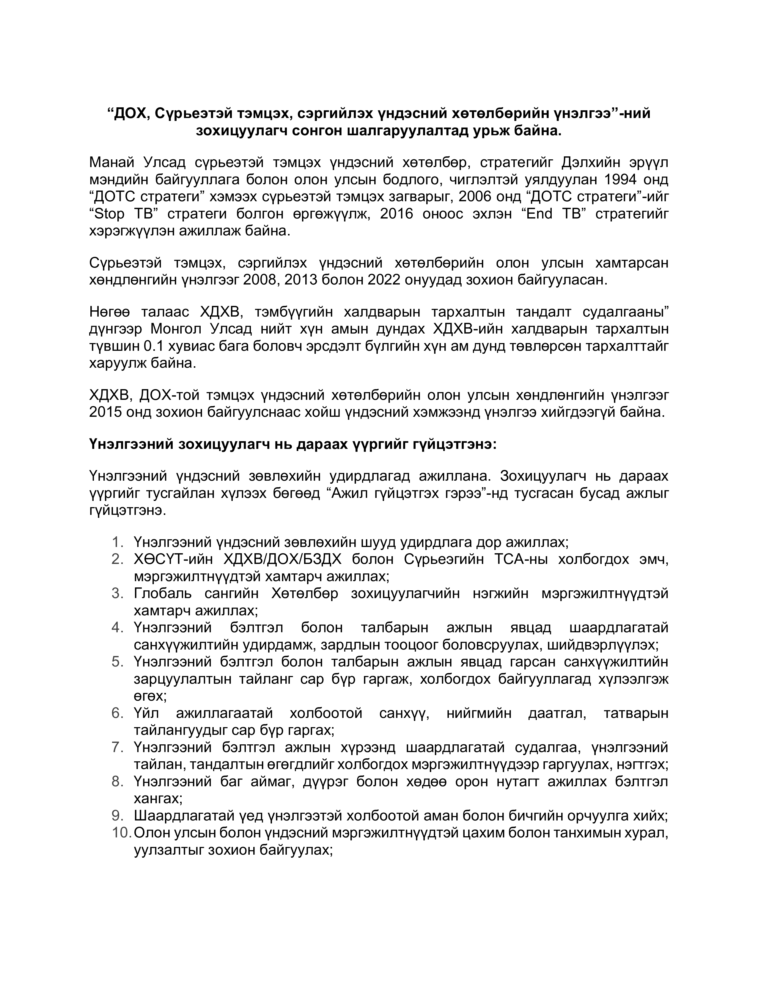 “ДОХ, Сүрьеэтэй тэмцэх, сэргийлэх үндэсний хөтөлбөрийн үнэлгээ”-ний зохицуулагч сонгон шалгаруулалтад урьж байна.