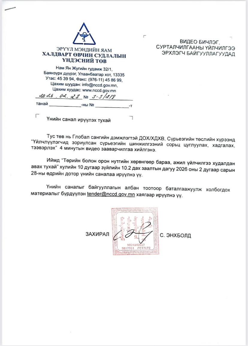 Менингококкт халдвар нь Neisseria meningitidis нянгаар үүсгэгддэг, богино хугацаанд хүндэрч болзошгүй аюултай халдвар юм.2 цаг 20 минутын өмнөҮнийн санал5 цаг 33 минутын өмнөХАЛДВАРТ ӨВЧИН СУДЛАЛЫН ҮНДЭСНИЙ ТӨВ-ИЙН НЭГДСЭН ЛАБОРАТОРИЙН АЛБА 4 ДЭХ УДААГАА ИТГЭМЖЛЭГДЛЭЭ2 сар 16. 18:34ТӨРӨЛЖСӨН МЭРГЭШЛИЙН ТӨВ ЭМНЭЛЭГ, ТУСГАЙ МЭРГЭЖЛИЙН ТӨВ, АЙМАГ НИЙСЛЭЛИЙН ЭРҮҮЛ МЭНДИЙН ГАЗАР, БОЭТ, НЭГДСЭН ЭМНЭЛГҮҮД, МЯЭ, ШШҮХ, АШУҮИС, АЧ АНАГААХ УХААНЫ ИХ СУРГУУЛЬ, ЭТҮГЭН ИХ СУРГУУЛЬ, ШИНЭ АНАГААХ УХААНЫ ИХ СУРГУУЛЬ, ХУВИЙН ХЭВШЛИЙН ЭМНЭЛЭГ, ЛАБОРАТОРИУДЫН ДАРГА НАРТ-Д2 сар 16. 15:33🌙 Цагаан сарын үеэр улаанбурханаас сэргийлэх зөвлөмж 🛡2 сар 16. 14:08