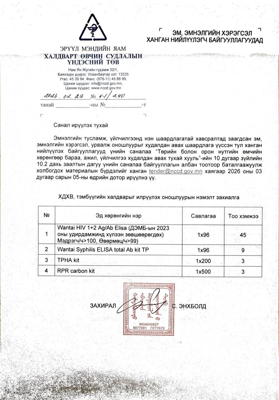 Цагийн хуваарь: Амбулатори 08:30-14:30Халдвартын хүлээн авах яаралтай тусламж 24:00 цаг