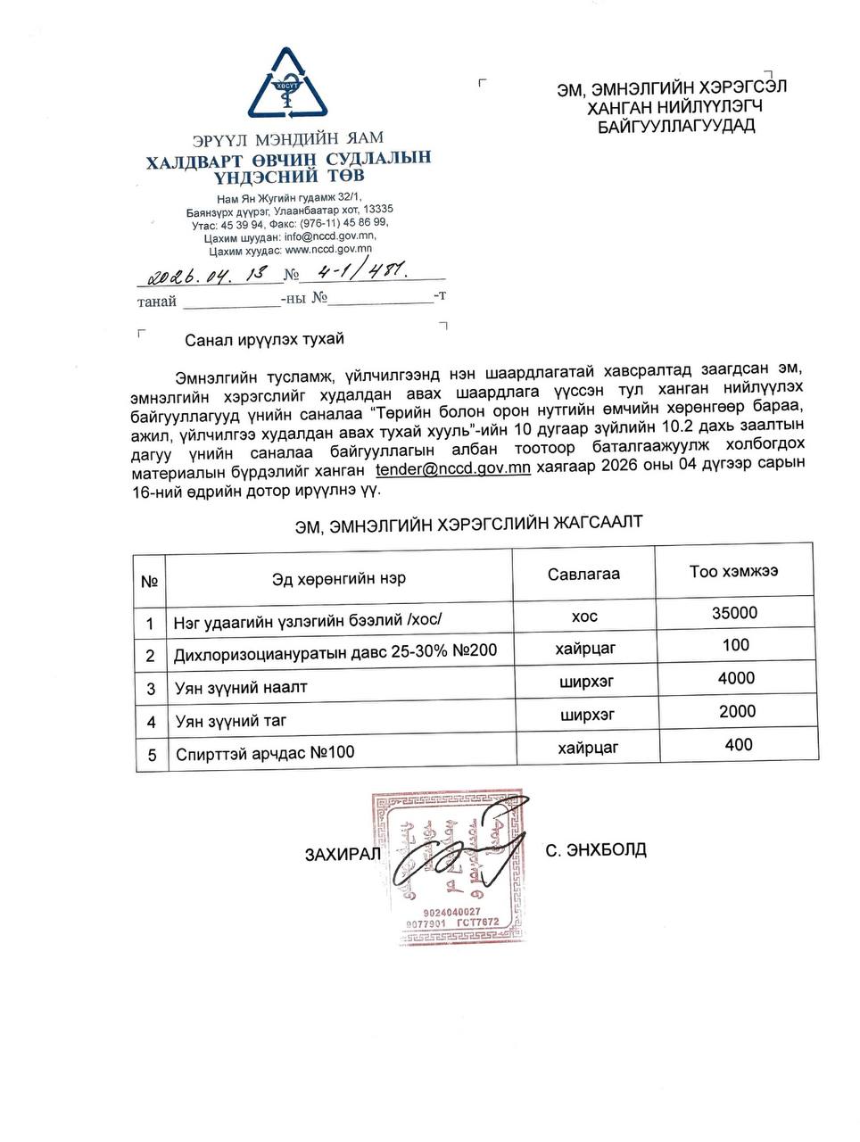 Эм, эмнэлгийн хэрэгсэл ханган нийлүүлэгч байгууллагуудад